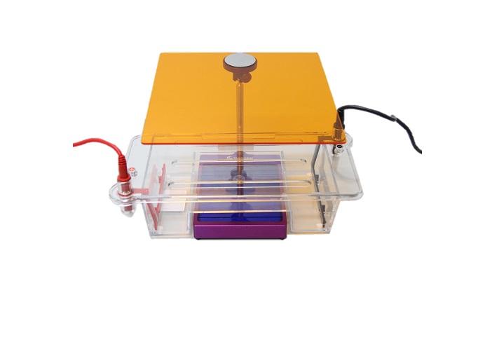 TGreen Monitor plus 蓝光电泳监测仪套装是基于 TGreen Monitor 的一款升级产品。套装内提供一台六一生物科技有限公司型号为 DYCP-31DN 的电泳槽,蓝光电泳监测仪的尺寸与电泳槽完全匹配;套装内还提供一件亚克力材质的切胶架(OSE470M-A001),切胶架直接放置于蓝光电泳监测仪上,方便凝胶回收的操作。使用滤光片,规避了使用传统滤光眼镜的人体接触污染风险。滤光片可 360 度自由固定,使用更方便。 采用 LED 蓝光光源,可用于多种安全染料/EB 染料染色的核酸的观察。 兼容的荧光染料:EB GeneGreenGeneRedGelGreenGelRed Goldview 等。搭配荧光染料(如 GeneGreen),分辨率可达 2 ng