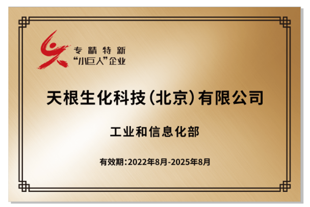 时博·(中国)手机网页版(以下简称“天根生化”)入选国家级专精特新“小巨人”企业,已收到工业和信息化部颁发的国家级《专精特新“小巨人”企业》证书,有效期自2022年8月至2025年8月止。