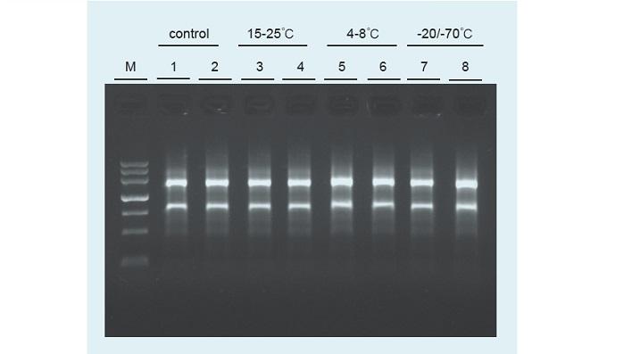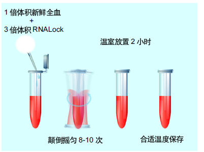 血液 RNA 稳定剂是一种液态的、低毒的血液保存试剂。它能立即稳定新鲜血液中的 RNA,含有该试剂的人血液样品可在 2-8℃保存 5 天,或在 -20 ℃ 条件下至少保存三个月,含有该试剂的哺乳动物血液样品可在 15-25 ℃ 保存 2 天,2-8 ℃ 保存 7 天,或在 -20 ℃ 条件下至少保存六个月,RNA 不会出现明显降解。后续使用 RNAprep Pure 血液总 RNA 提取试剂盒结合优化流程,可从保存于血液 RNA 稳定剂的血液中快速提取总 RNA。