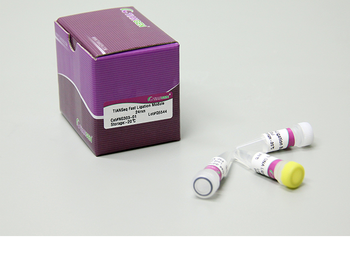 TIANseq Fast Ligation module 是专门针对于 Illumina 高通量测序平台所优化的预混酶模块。使用本模块可以将 3’端带有 dA 尾的 DNA 片段与 adapter 进行快速连接。与常规方法比较,本模块采用了一步法反应流程, TIANSeq Fragmentation/End Repair/dA-Tailing Module TIANSeq End Repair/dA-Tailing Module 反应后所获得的片段后DNA,无需磁珠纯化,可使用本模块直接与 adapter 进行连接,省去了多步磁珠纯化步骤,操作更加简便,文库转化效率更高。